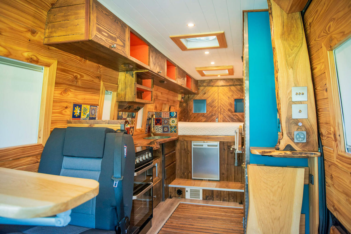 Ancient oak live edge worktop with Moroccan hammered copper sink