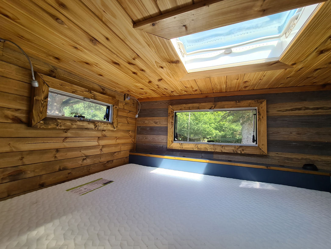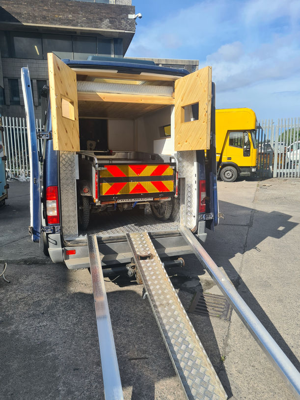 - The Rickshaw storage in Fluffy's festival camper. Thanks to the motorised bed we installed, we were able to provide a fully functioning home complete with garage!